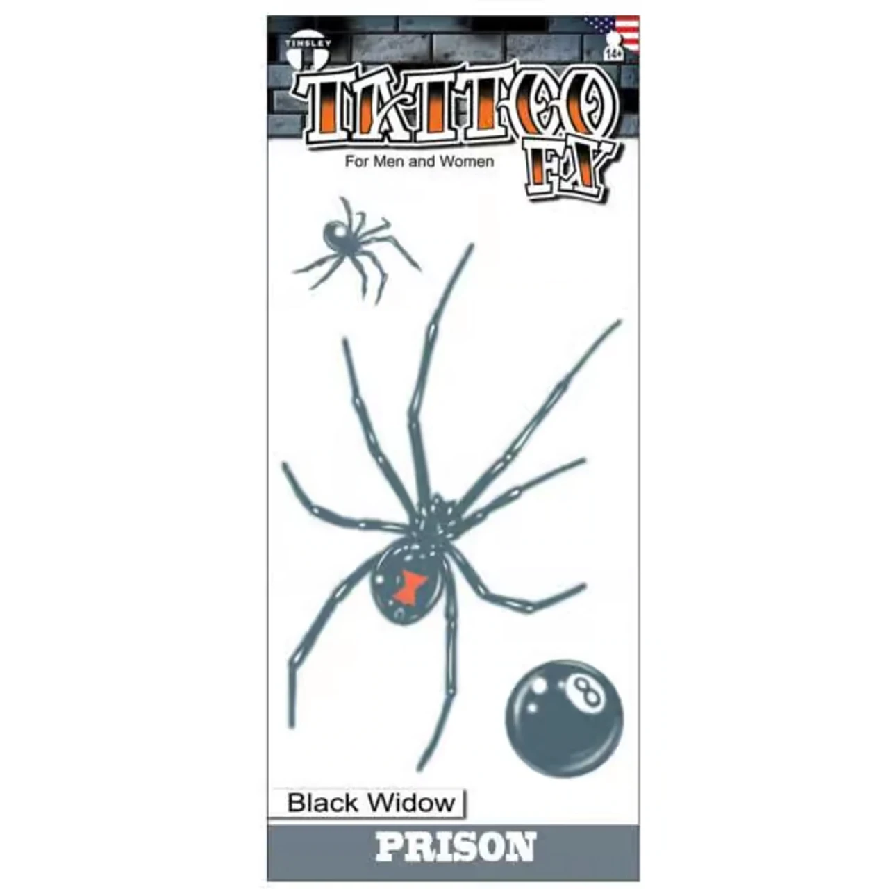 Add an extra touch to your inmate or other costume with this black widow tattoo.