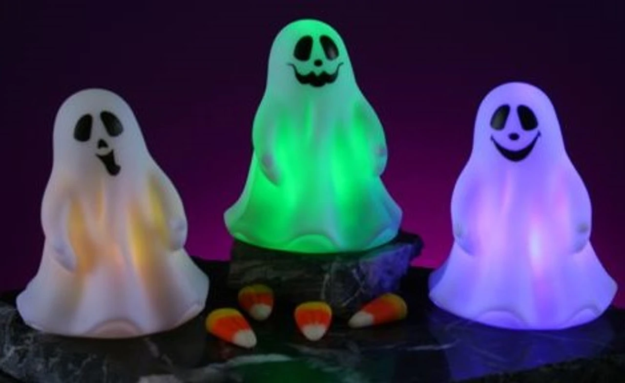 Each ghost stands at 3.75 inches and include 3 Button Cell Batteries. Assorted faces available.