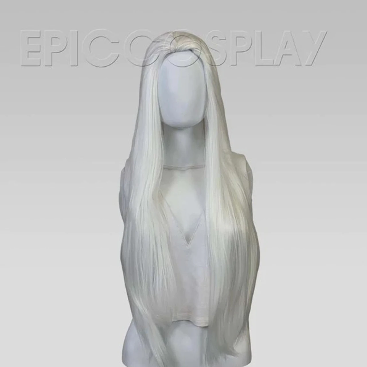 This Eros wig is a multipart long wig that is perfect for use as an alternative to lace front wigs. A large skintop along the front of this wig creates a natural looking hairline and allows for parting in a variety of directions. You can slick it back, part it to the side, or even create bangs with the help of a little bit of heat from a blow dryer. If a length of 31.5″ is a little bit too much for you, it can easily be trimmed shorter or pulled back into a ponytail due to its thick wefting. This multipart Classic White long wig is also made with our tangle resistant fibers, making maintenance and care an easy, hassle free job.
