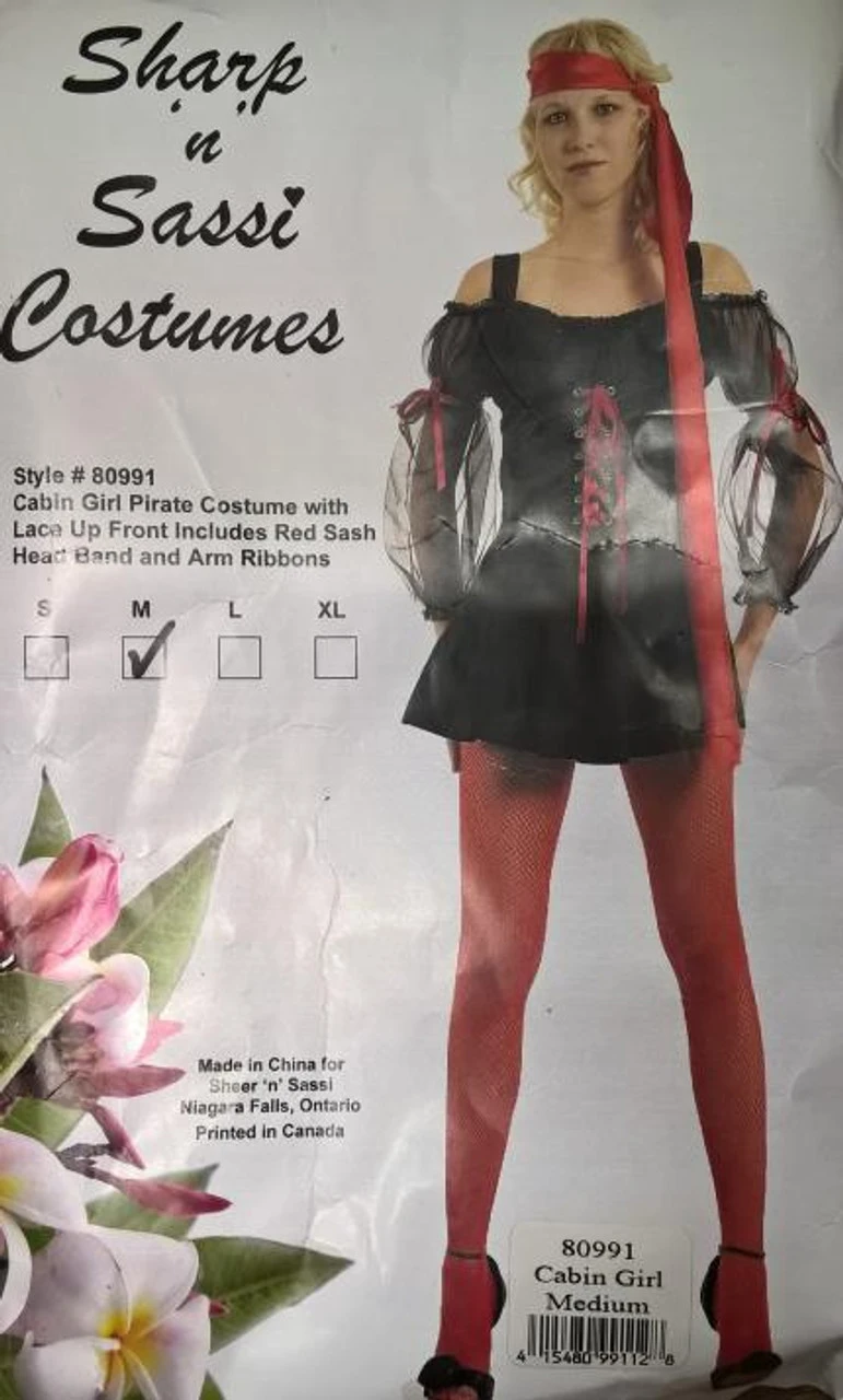 This costume includes the following items: dress with lace up front, head scarf