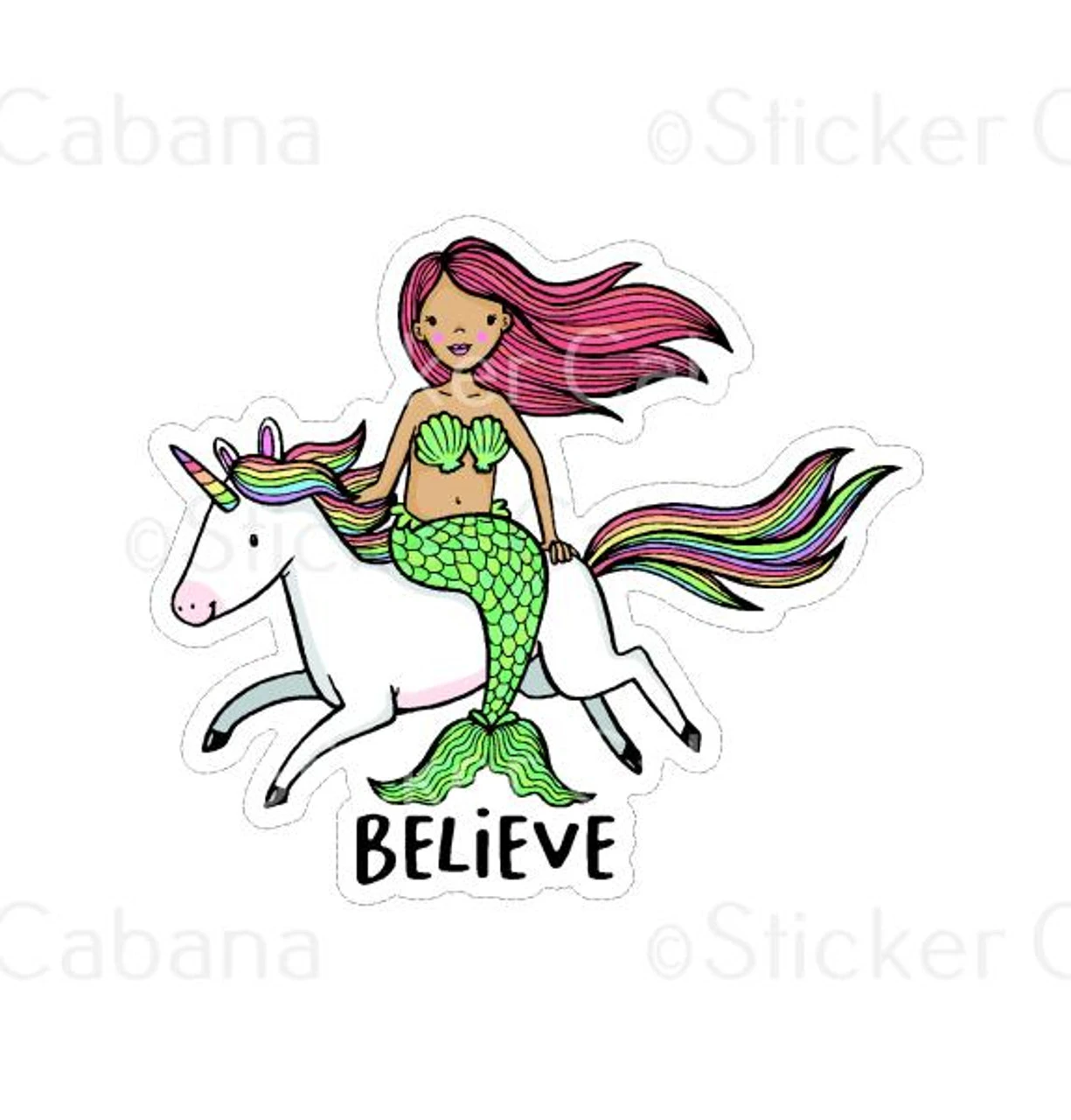 Mermaid Riding Unicorn Believe | Sticker Cabana | Vinyl Stickers