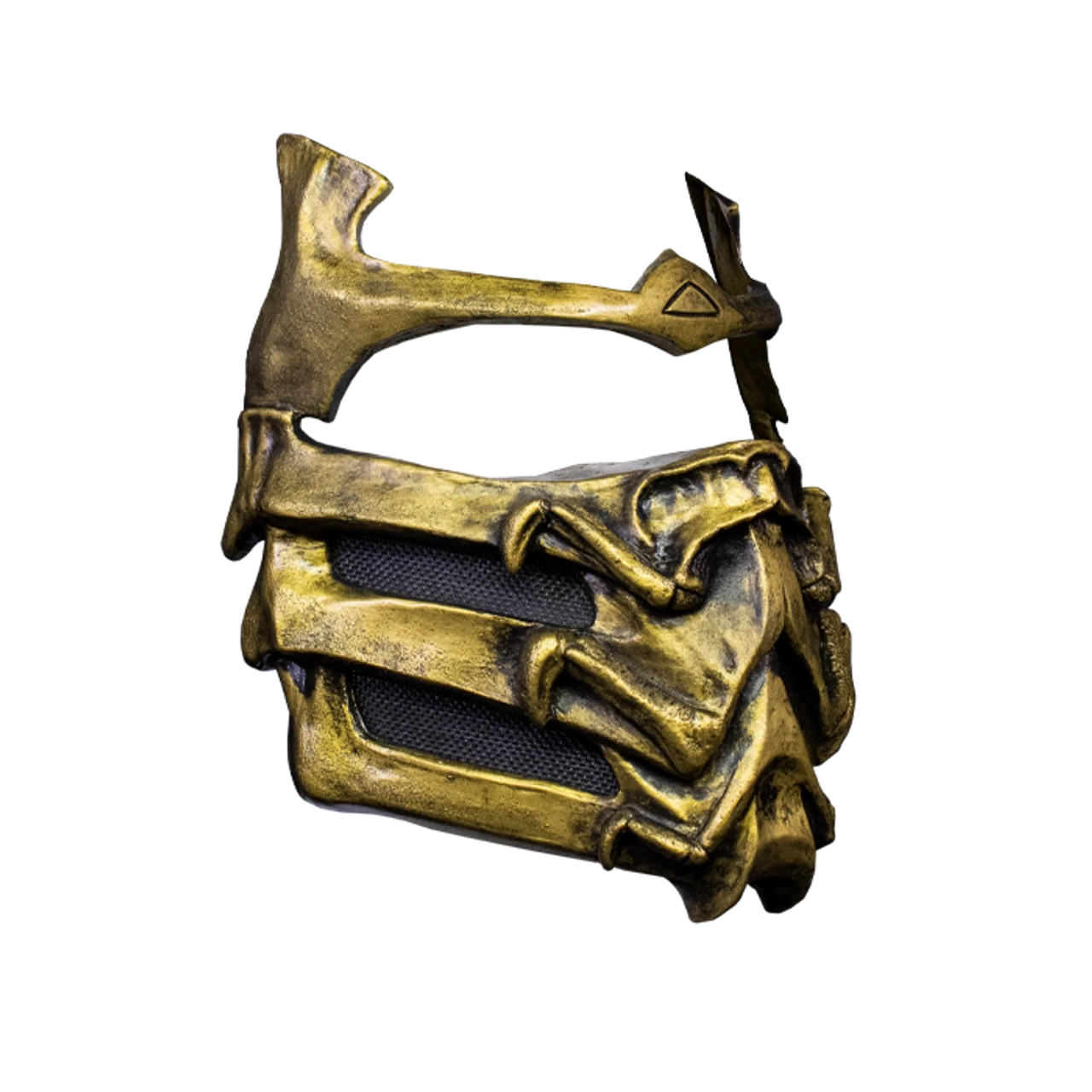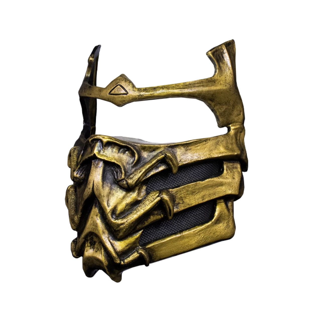 Sculpted by Brad Zonka, this mask is based on Scorpion from the incredible Video Game Mortal Kombat 9. Every detail of Scorpion is captured in this amazing mask and includes straps for the perfect fit. In order to retain all of the details of this amazing mask it was made using injection molded plastic.