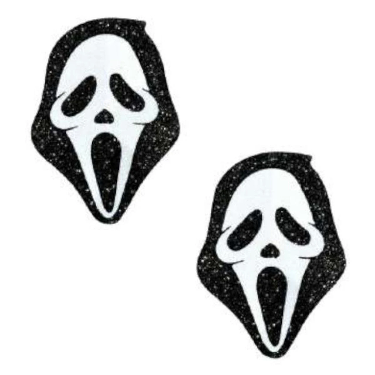Slay in spooky style with Neva Nude Glitter Ghostface Pasties! Featuring the iconic horror mask with a glittery twist, these bold pasties are perfect for Halloween, horror-themed parties, or adding edge to your festival look. Sweat-proof, waterproof, and reusable, they stick securely while keeping you comfy and confident all night long. Made with skin-safe adhesive, they’re as practical as they are provocative. Scream-worthy sparkle meets killer style—dare to wear the unexpected!