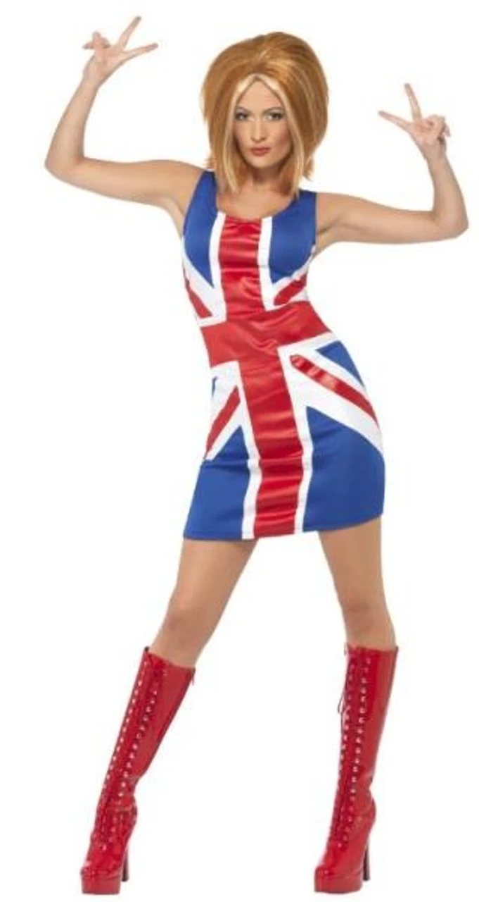 Spice up your wardrobe with our Union Jack Dress Costume, a tribute to the iconic Ginger Spice herself! This dress is more than a costume; it’s a spicy fashion statement that’s perfect for parties, concerts, or simply zig-a-zig-ah-ing through life. With the unmistakable Union Jack design, it’s the ultimate homage to British pop culture. Whether you’re channeling your inner Ginger Spice or just want to flaunt your love for the UK, this dress will make your style pop with girl power. So, if you wanna have some fun, get ready to spice up your life – and your wardrobe! Girl power never looked so fabulous.