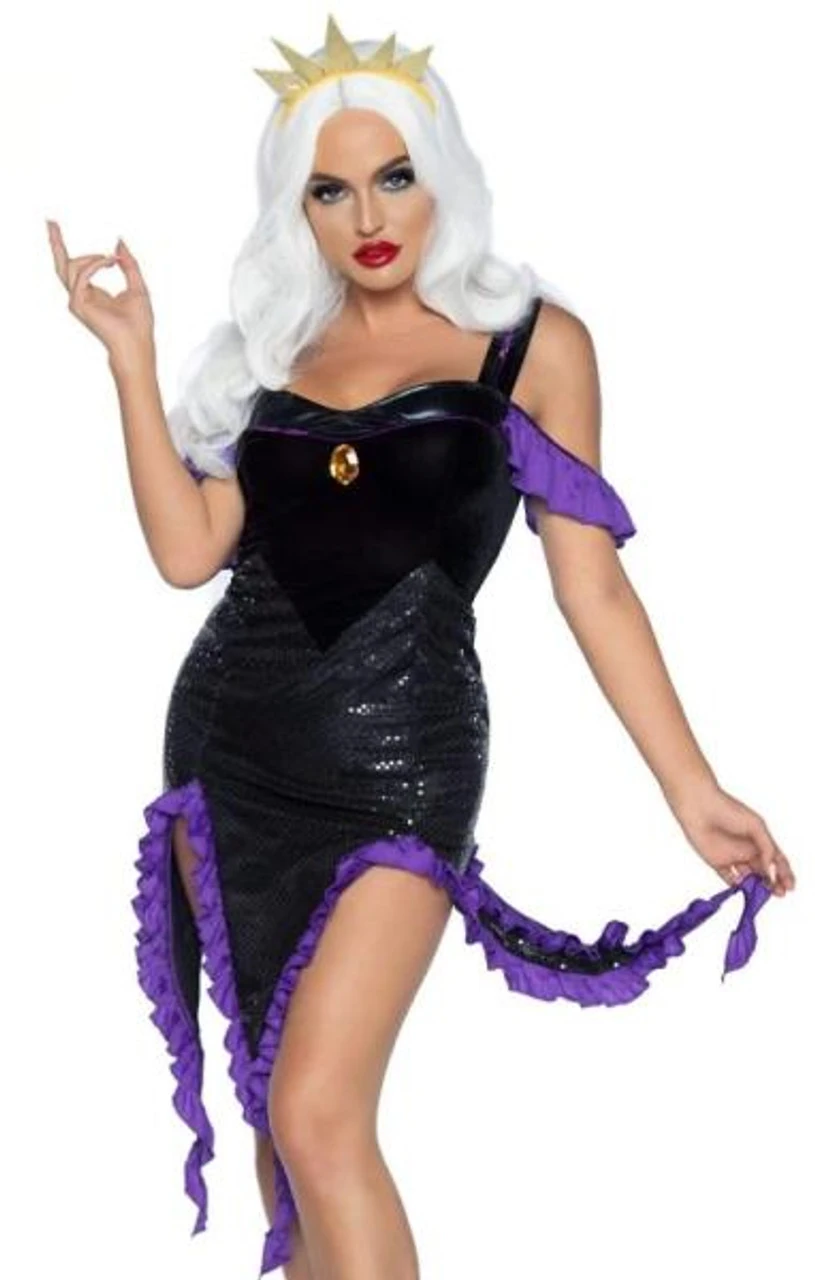 You may have been a nasty in the past, but the 2 PC Sultry Sea Witch costume by Leg Avenue is sure to make you everyone’s favorite deep-sea villain for the night. This voice-stealing babe includes a sexy velvet dress with shimmer tentacle skirt and crown headband. This women’s mermaid costume features unique details, unparalleled quality and a perfect fit.(WIG NOT INCLUDED)