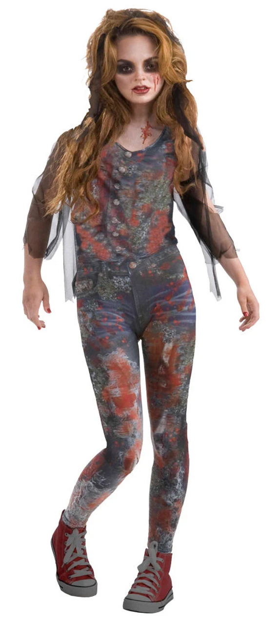 Feeling a little down in the dumps, craving a little bit of human? This Zombie Dawn girls costume is the perfect way to get it all out.